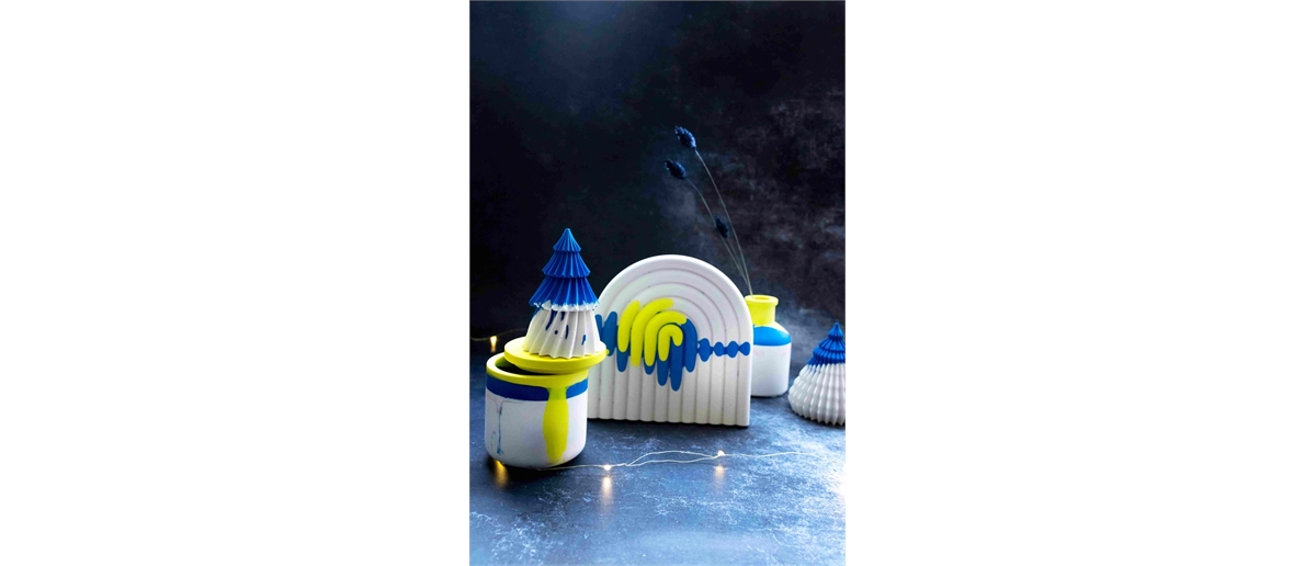 - Ensemble pot et sous-plat arc-ciel, couleur jaune fluo et bleu + sapin de Noël - Acrystal Prima